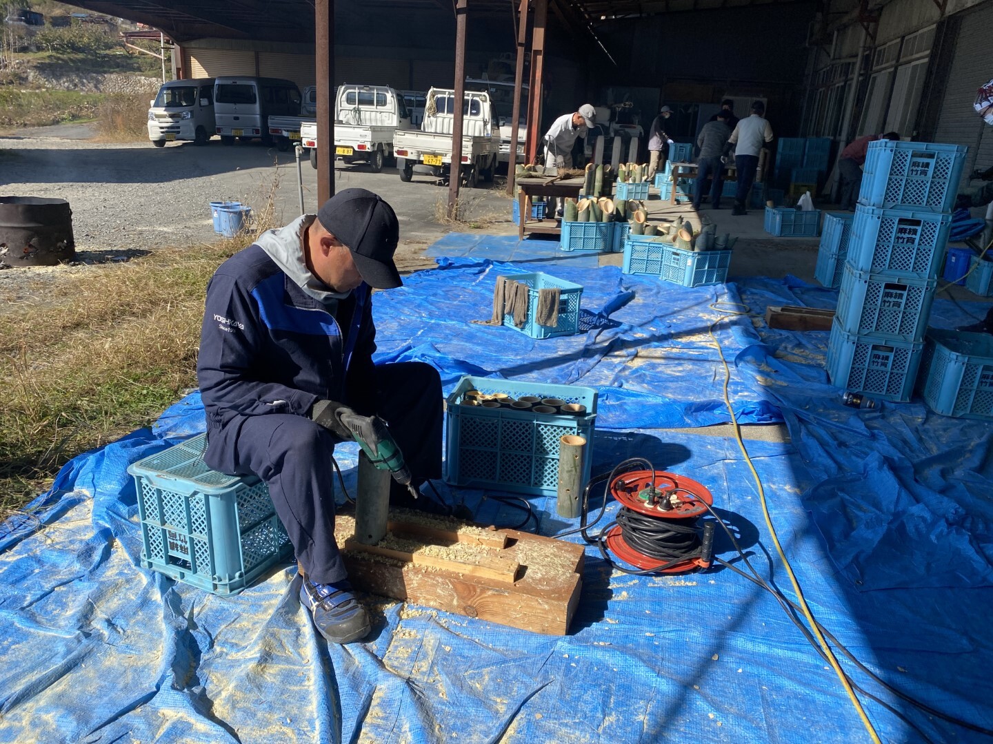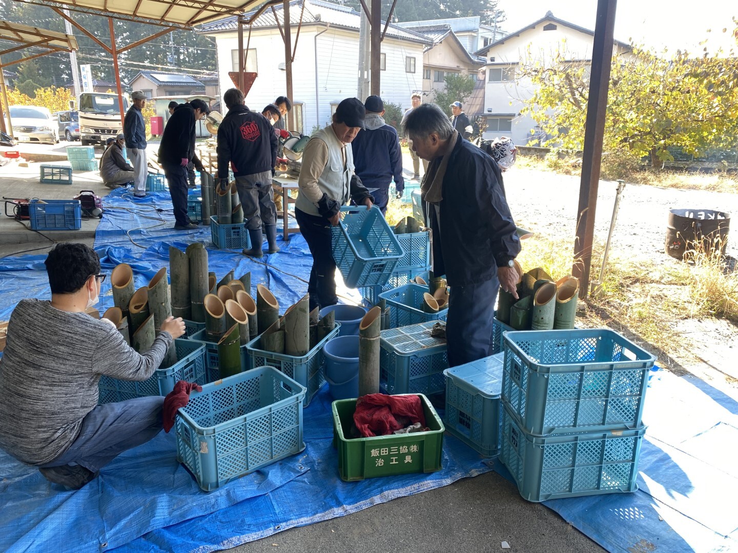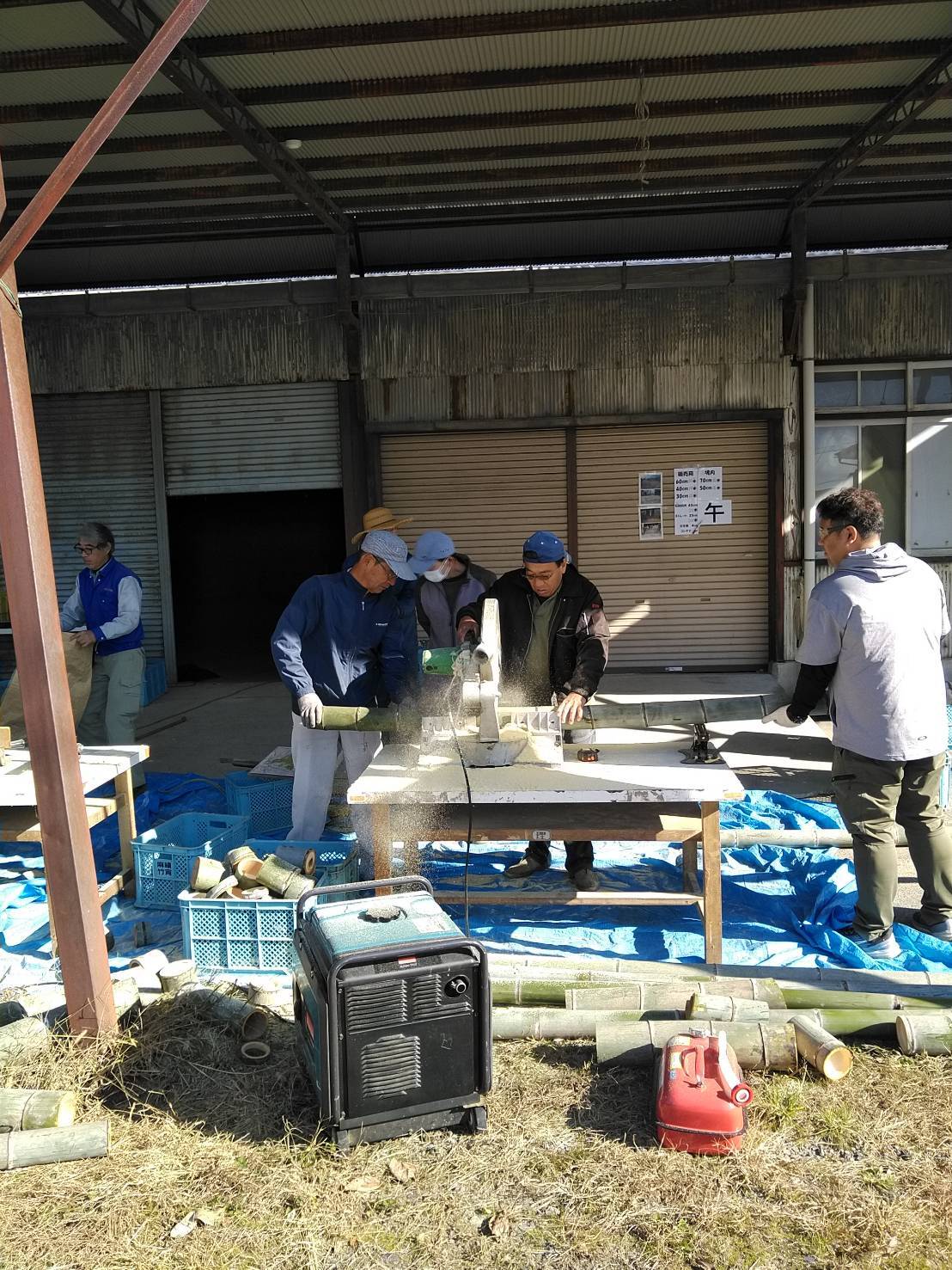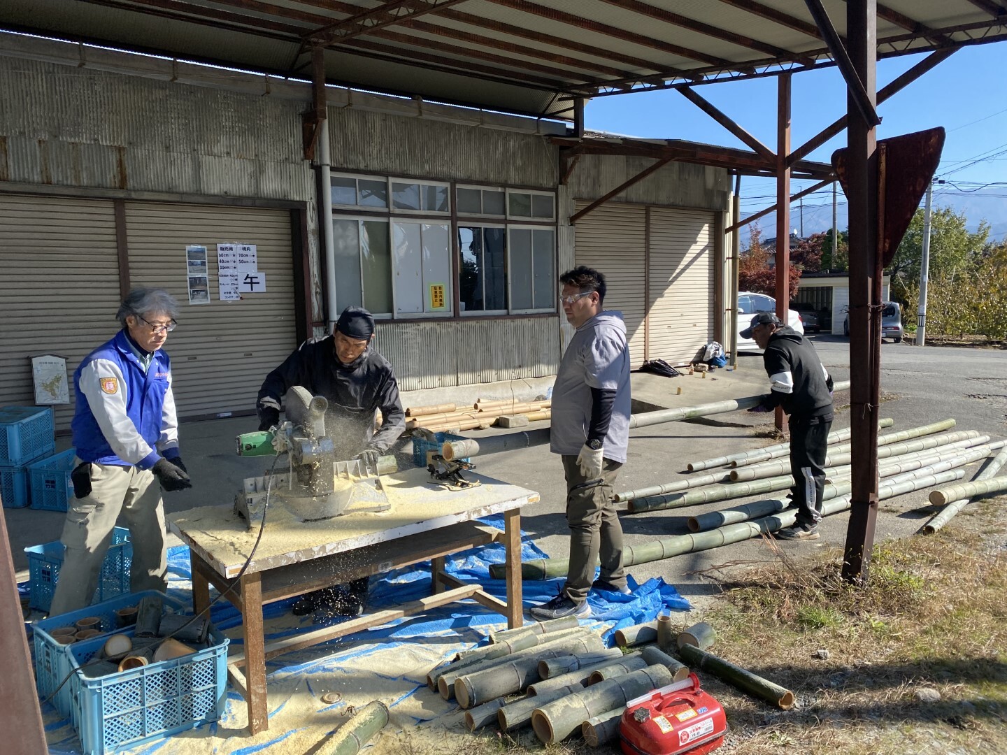 麻績の里振興委員会4班(かぐや姫)では、今年も年末年始に麻績神社前で実施する「除夜の竹宵」に並べる竹宵(装飾した竹筒内にろうそくを灯す)の準備を行いました。