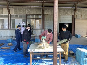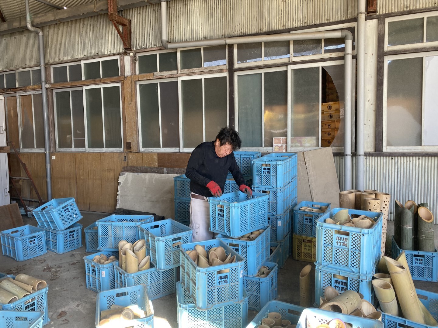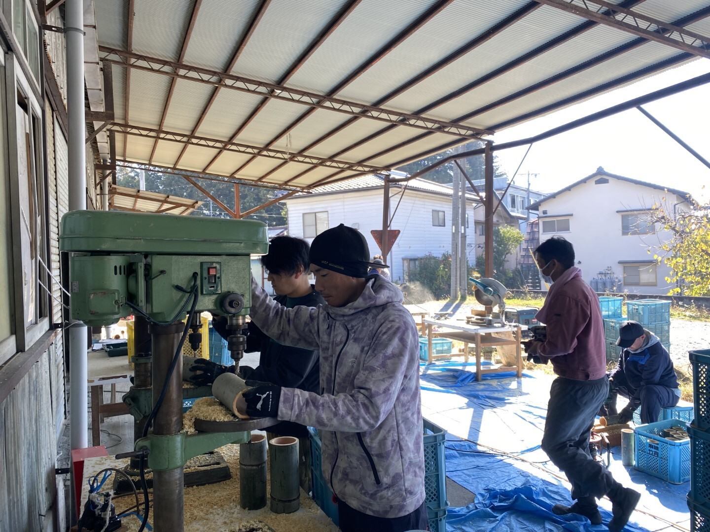 寒い中ではありましたが、皆さんで熱心に竹を加工し、装飾を施して竹宵作りに精を出しました。
