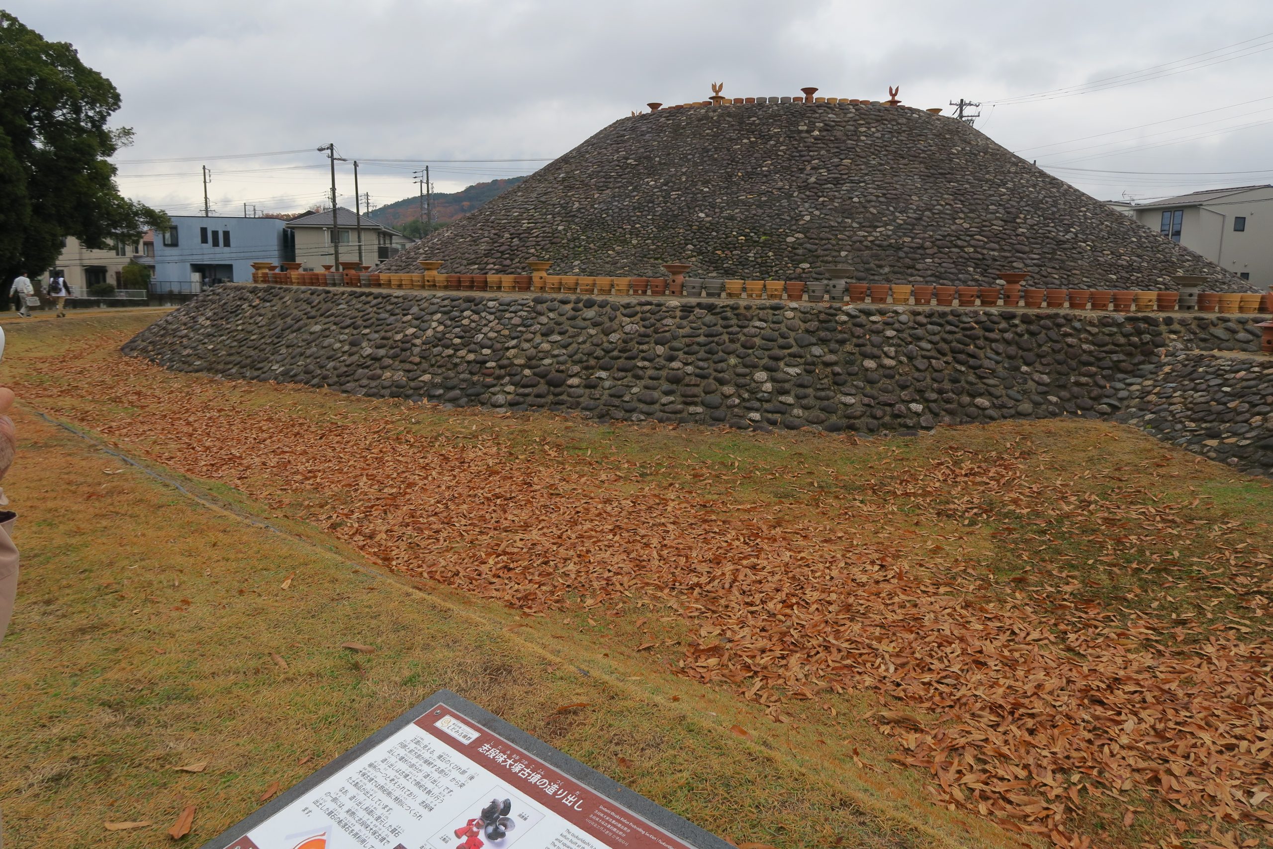 まずは、古墳時代を体感できる展示室ではガイダンスムービーを視聴後、貴重な出土品などをガイドの方の案内で見学。その後、屋外に出で広々とした開放的な空間に立地された帆立貝式古墳などを散策しながら、ガイドの方の説明に質問したりメモを取ったりしていました。