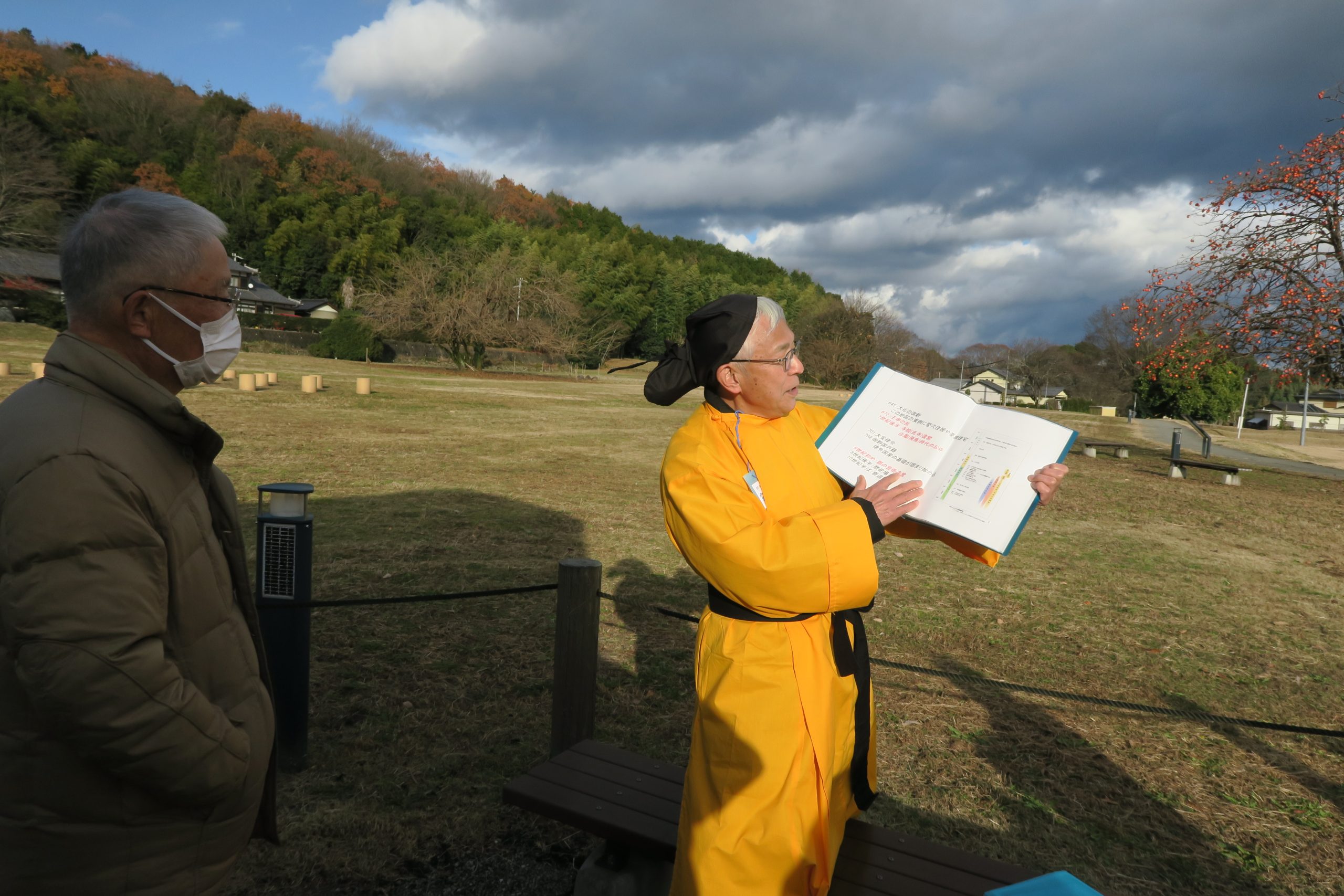 12月14日(日)、施設管理人及び地域ガイドの応募者と浪漫の郷委員会メンバーなど参加者12名はあいにくの雨の中、午前7時過ぎに自治振興センター駐車時用をマイクロバスで出発。