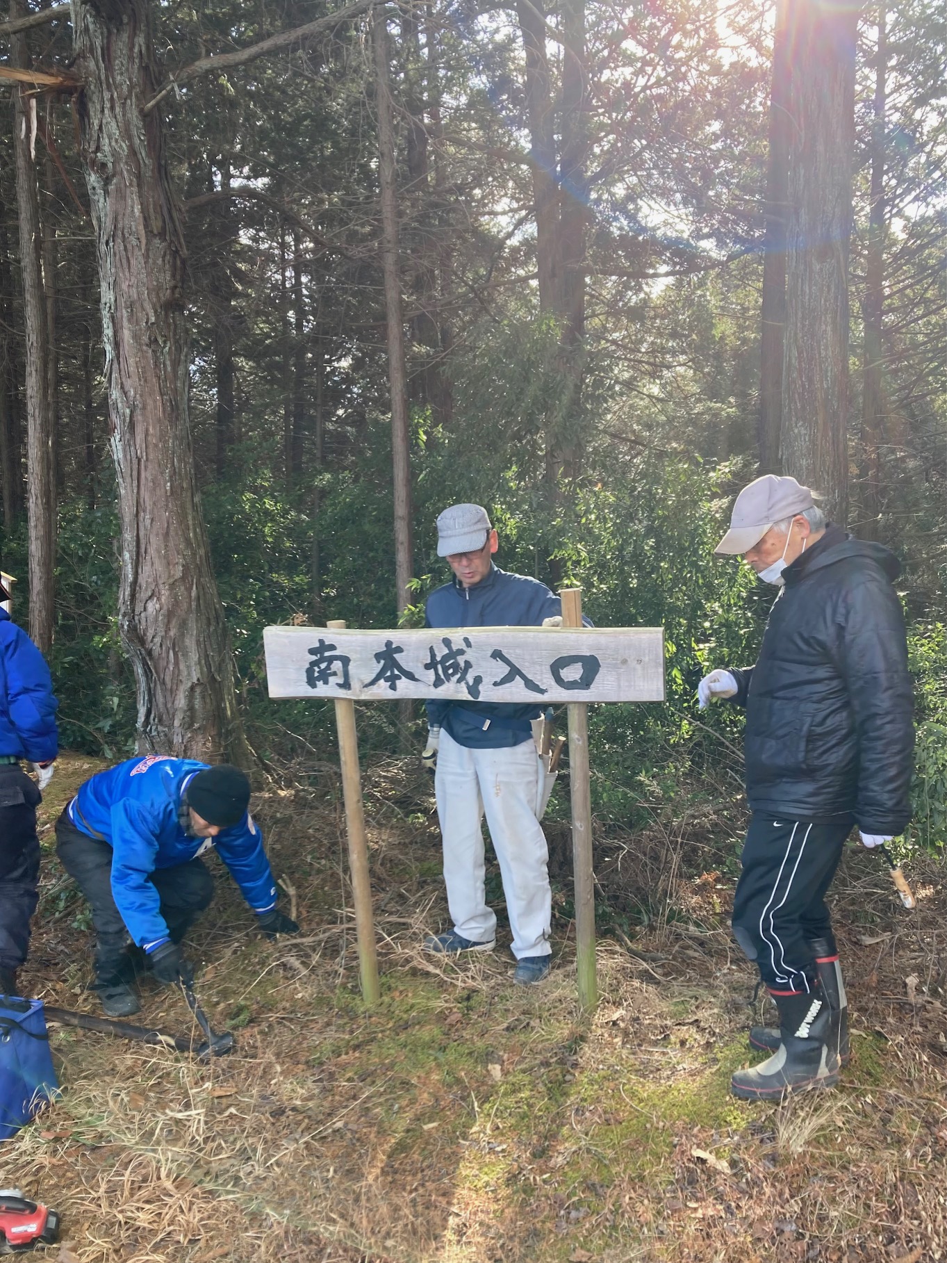 毎年、厳寒期のこの時期は城跡の遺構がはっきり確認できるので、遊歩道修繕や案内看板補修などの整備作業を行っています。